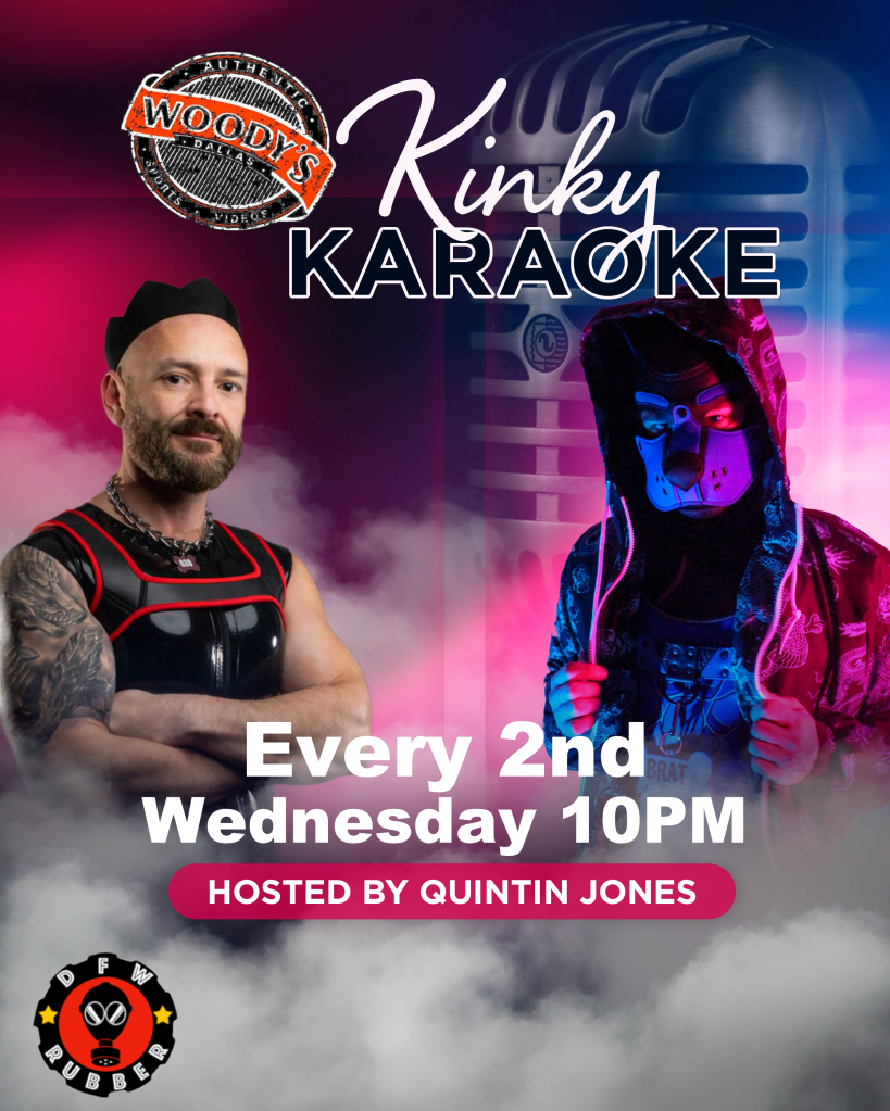 - Kinky Karaoke is the 2nd Wednesday of the month at Woody’s Dallas. Grab your gear and spend your hump day singing at Kink Karaoke! Pup hood, Pet gear, leather, latex or any type of gear is encouraged.
